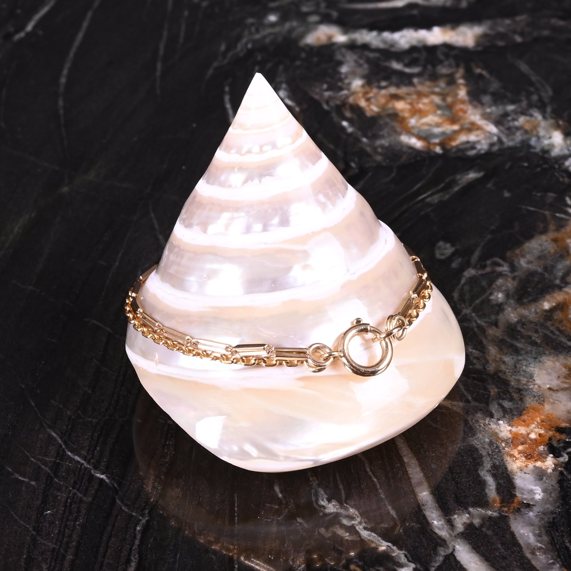€ 800Een achttien karaat geelgouden dubbele anker schakelarmband met staafvormige schuif bezet met 4 roos geslepen diamanten en veerring sluiting