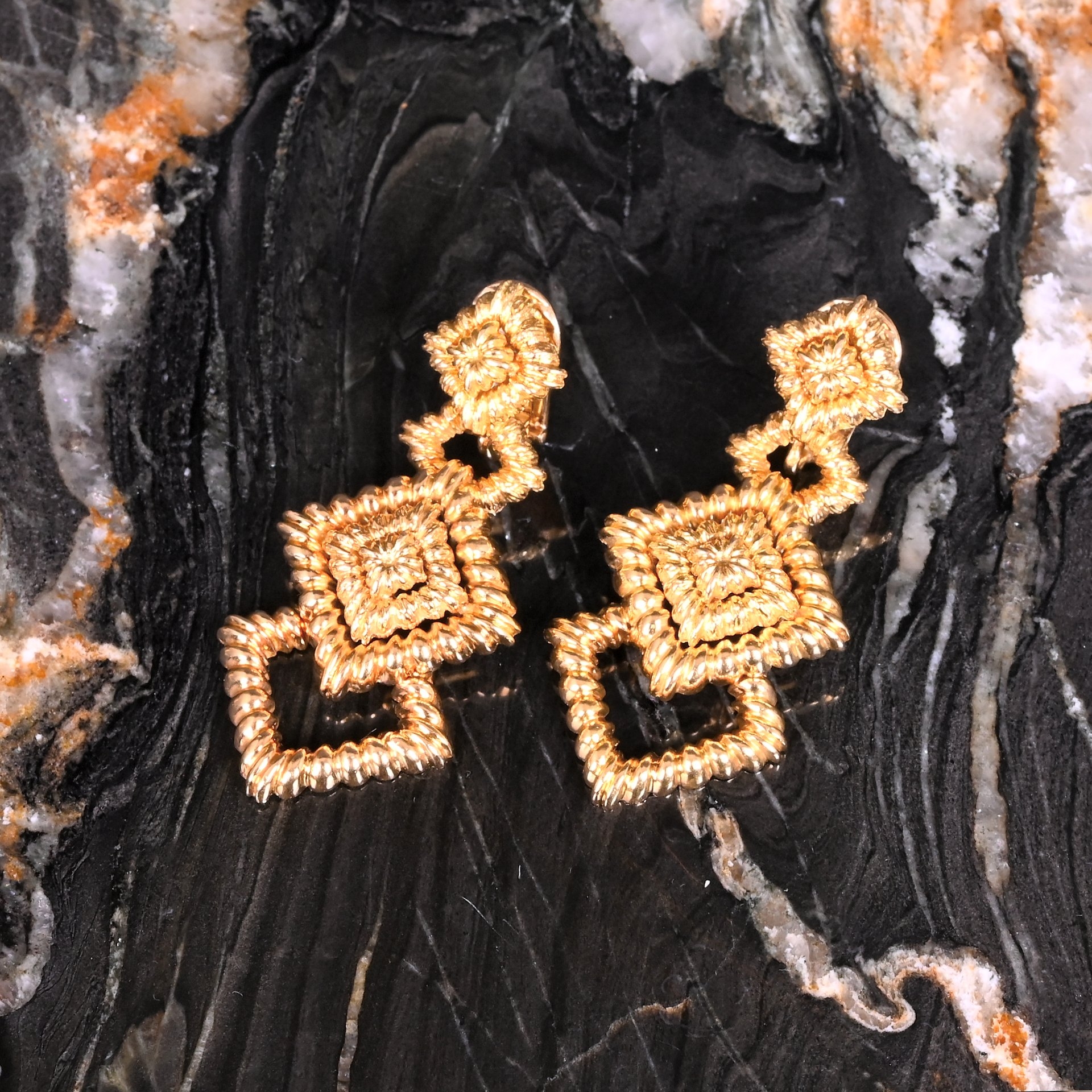 Paar geelgouden hartvormige oorbellen met diamanten