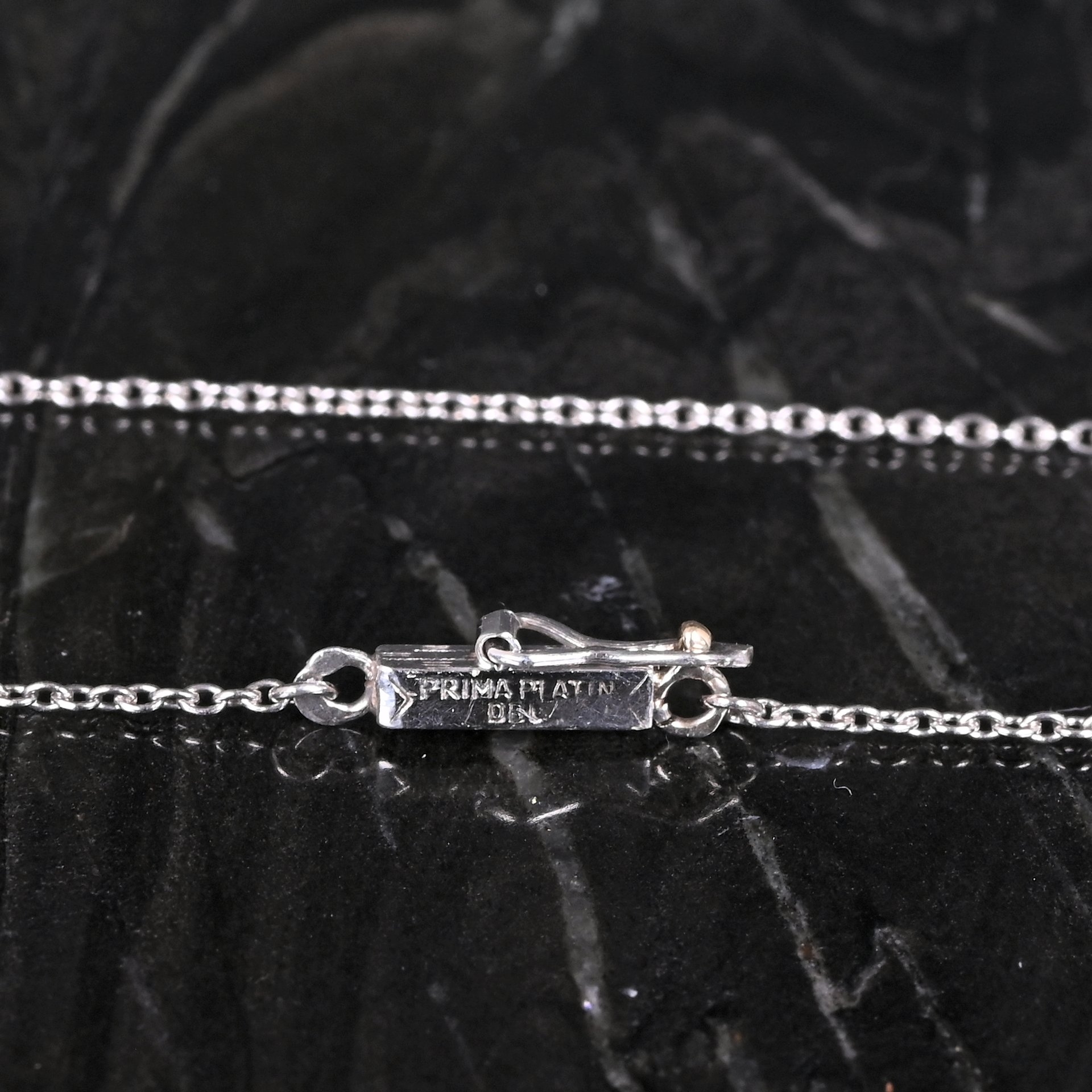 € 300Een fijn viertien karaat witgouden collier en staafvormige witgouden hanger bezet met roosgeslepen diamant in dichte zetting
