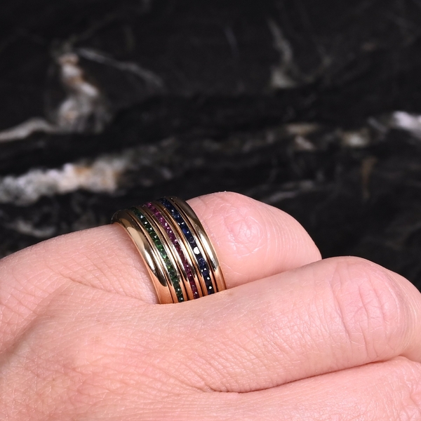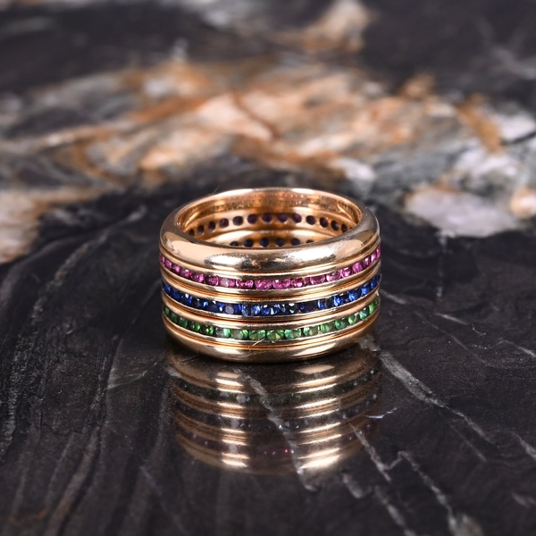 Statement geelgouden ring met diamant, saffier, smaragd en robijn - Frankrijk