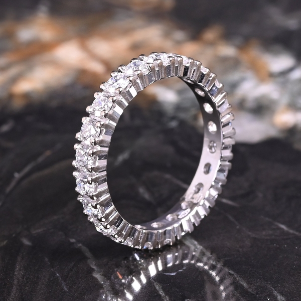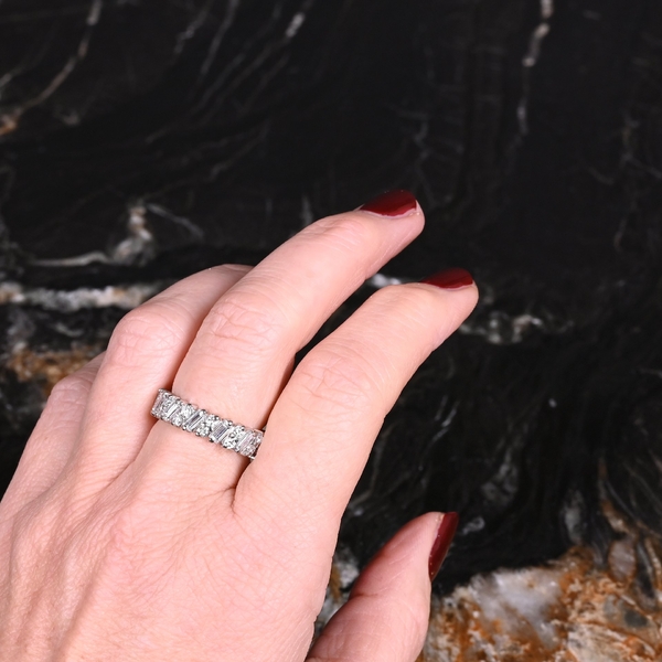 Witgouden alliancering met diamant in baguette en briljant slijpsel