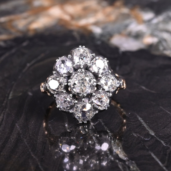 Jaren '70 bicolor gouden rozetring met diamanten - Georg Lauer