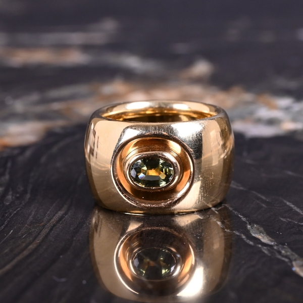 Bron Sushi roségouden solitairring met olijfgroene saffier