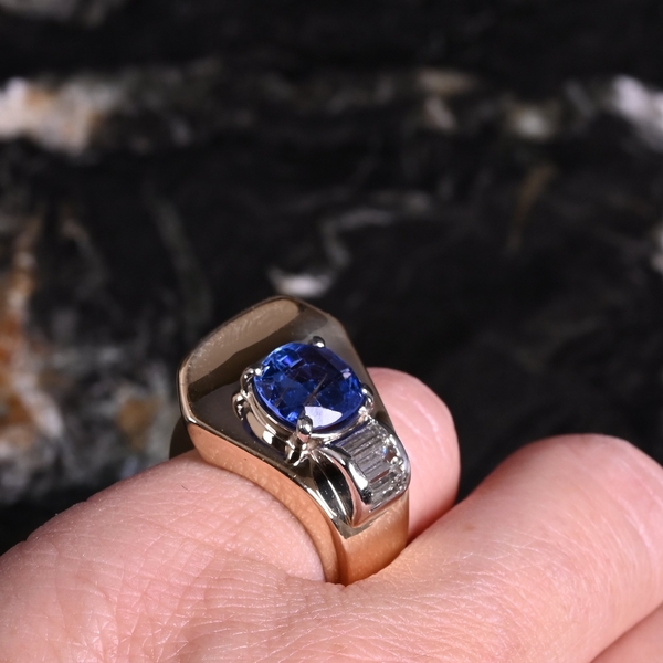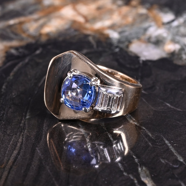 Art Deco bicolor gouden ring met blauwe steen en diamanten