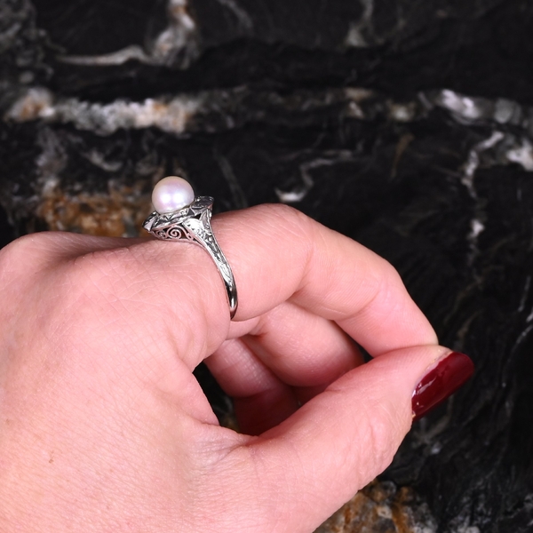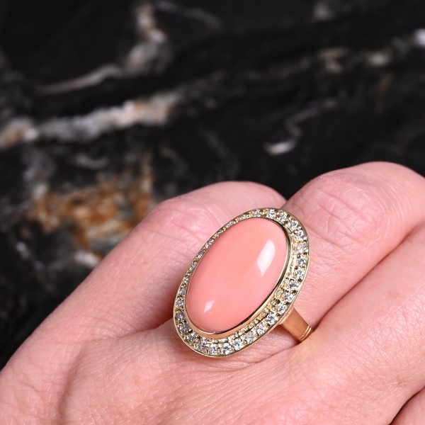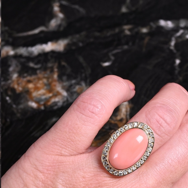 Art Deco platina ring met "Angel skin" koraal en diamant