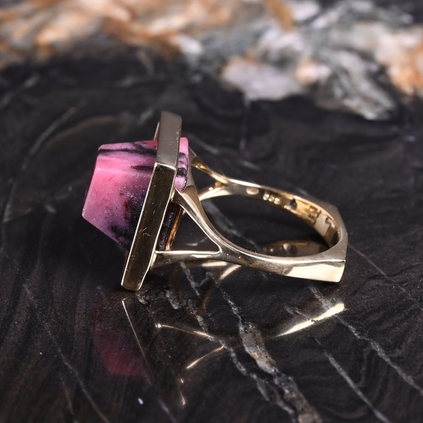 Bron Catch roségouden solitairring met grijs roze maansteen