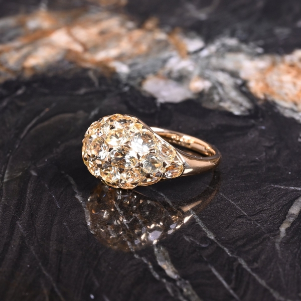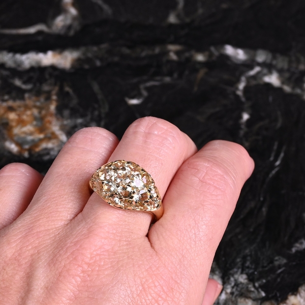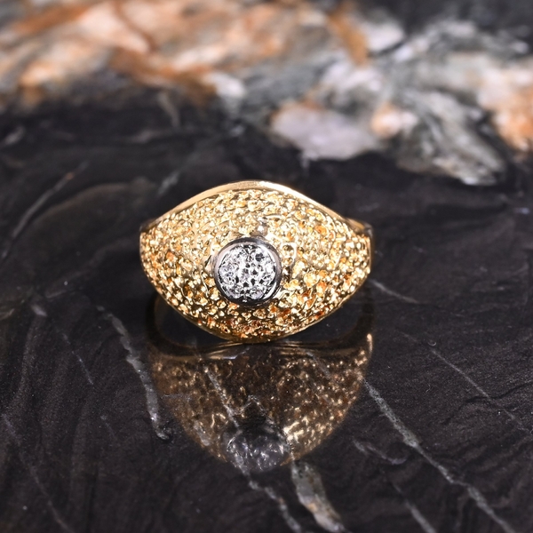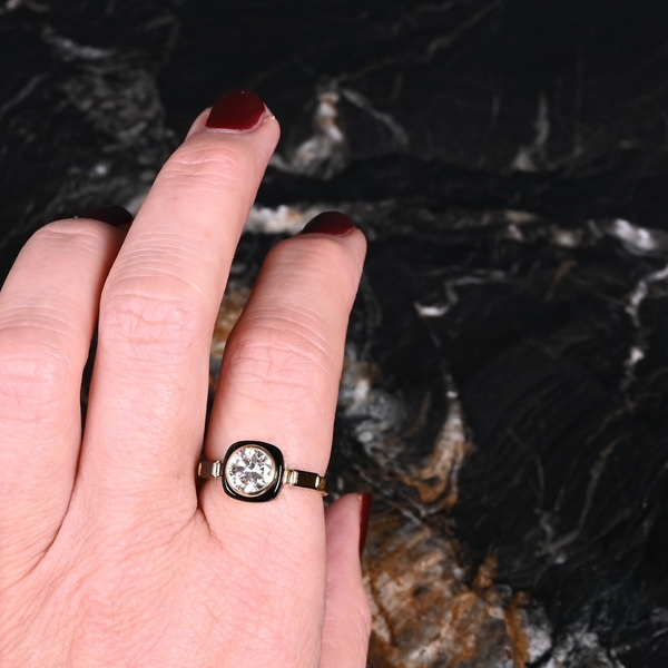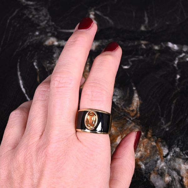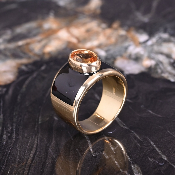 Statement geelgouden ring met gele topaas en zwart emaille - Italië