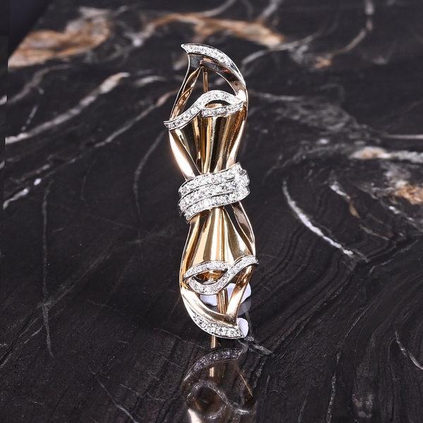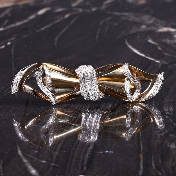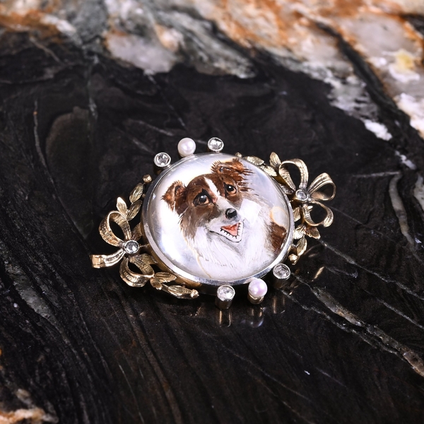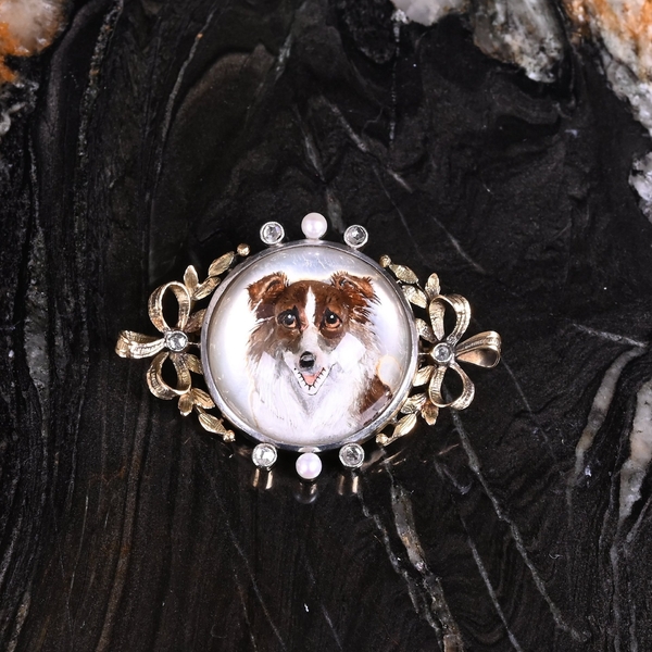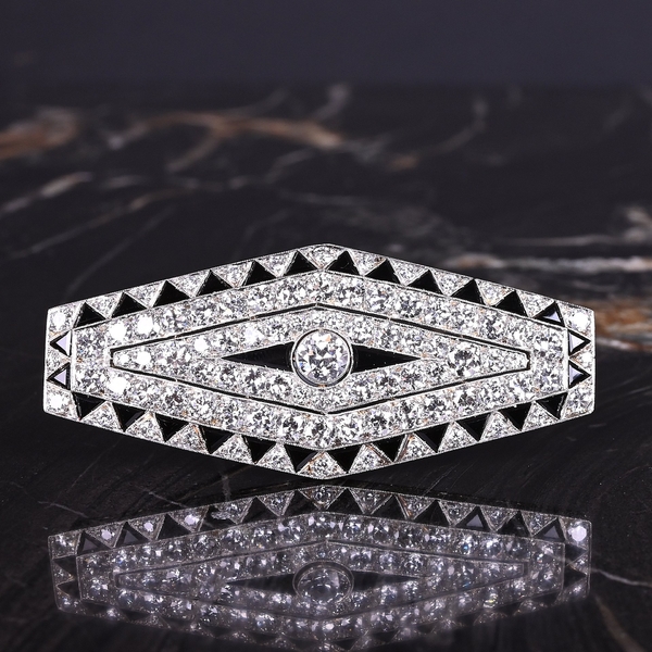 Art Deco bicolor gouden brochette met diamanten, parels en onyx