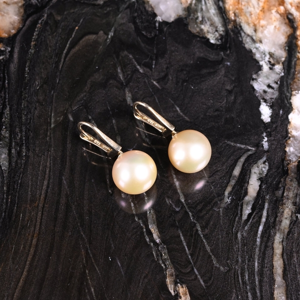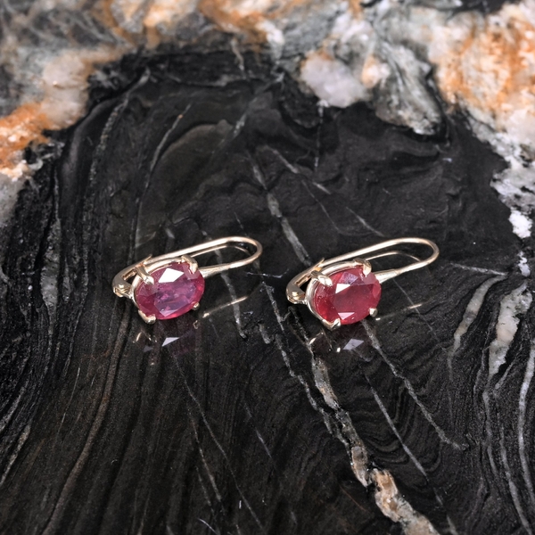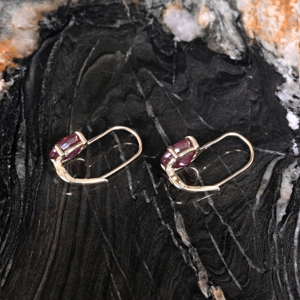 Paar geelgouden oorhangers met bloedkoraal en onyx pegel