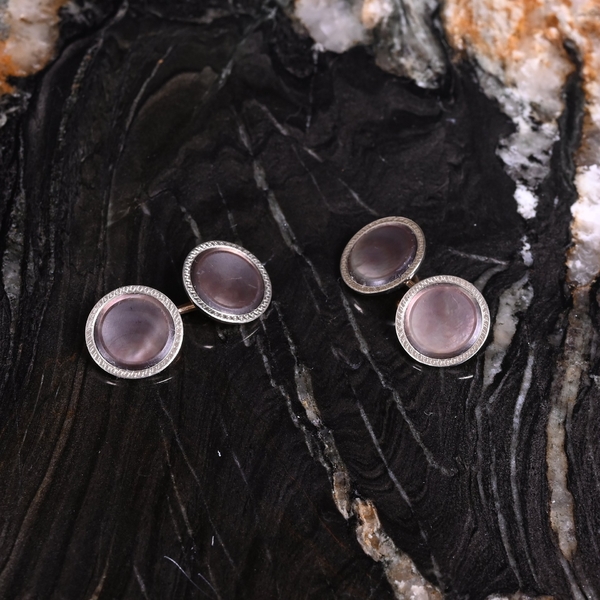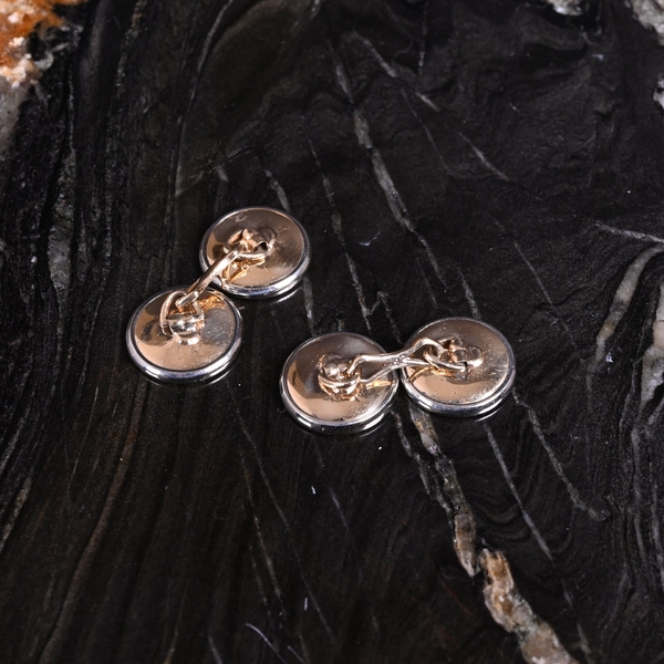 Paar bicolor jumelles manchetknopen met donker parelmoer