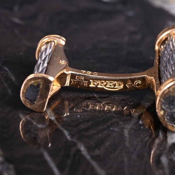 Een paar geelgouden met stalen manchetknopen - FRED PARIS FORCE 10 - Jaren 80
