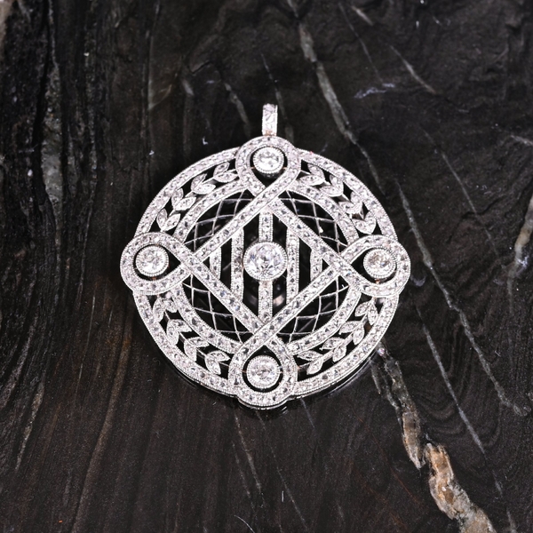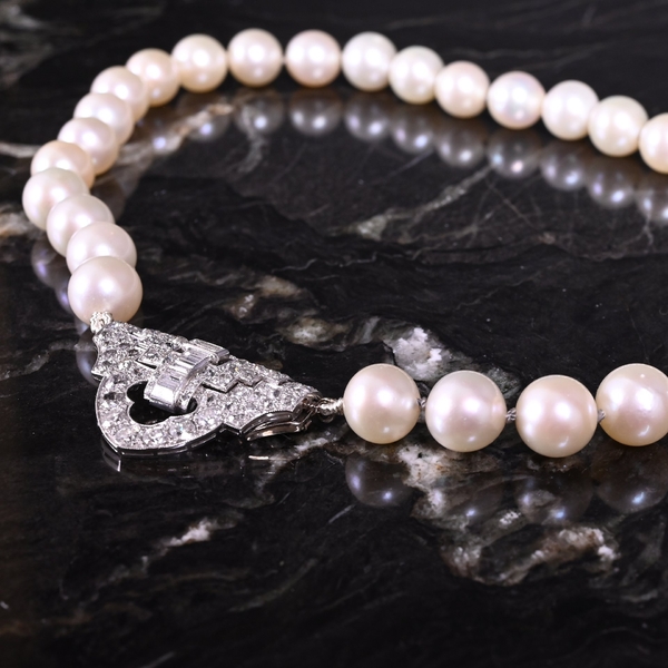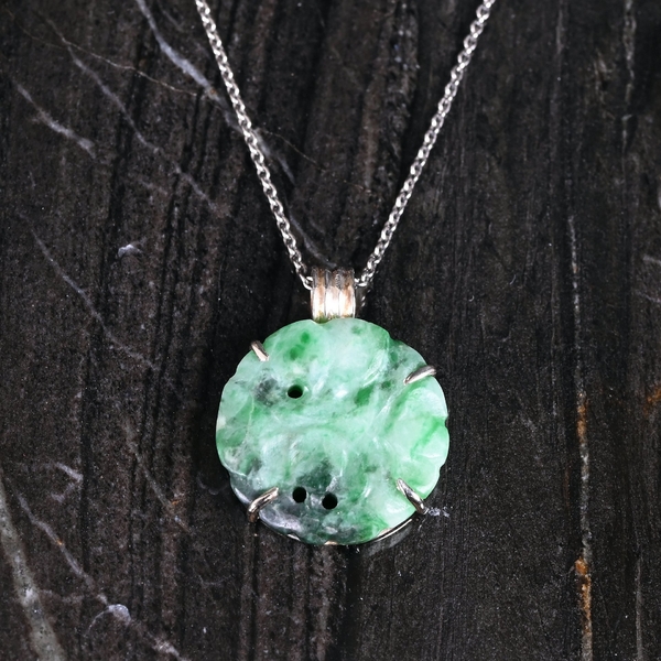 Art Deco witgouden hanger ronde gesneden jadeiet schijf aan Art Deco platina jasseron collier