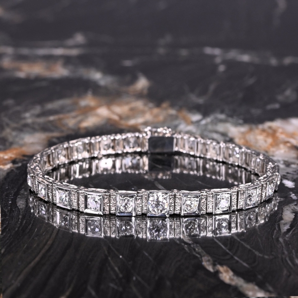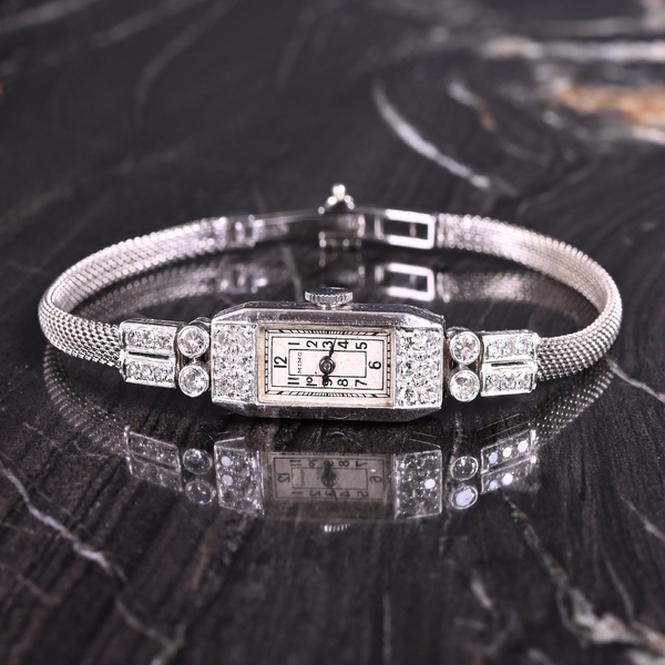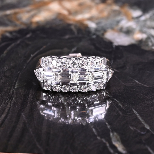 Art Deco witgouden rijring met roségouden accenten en diamanten