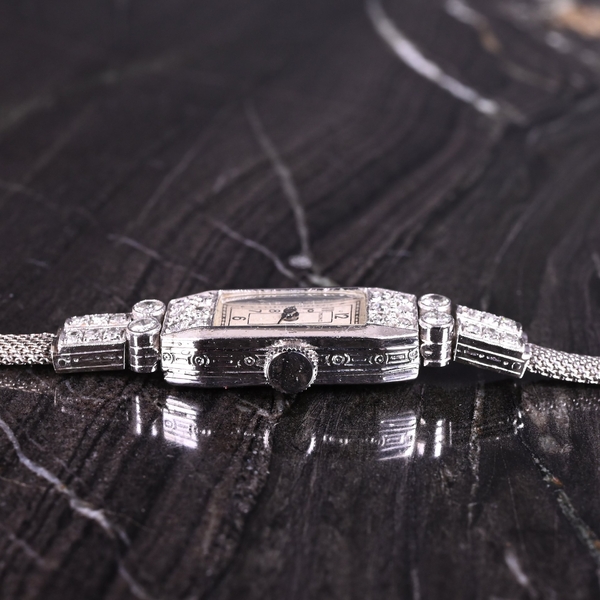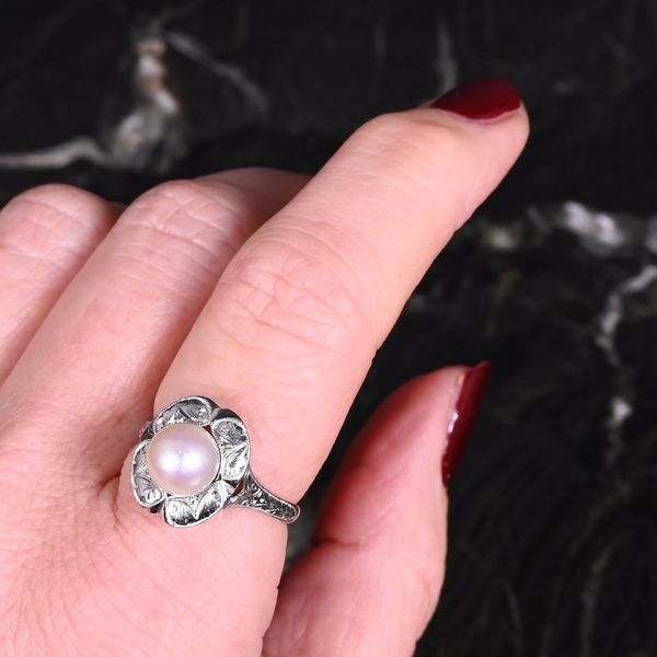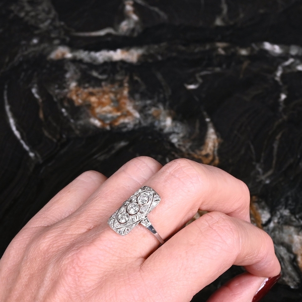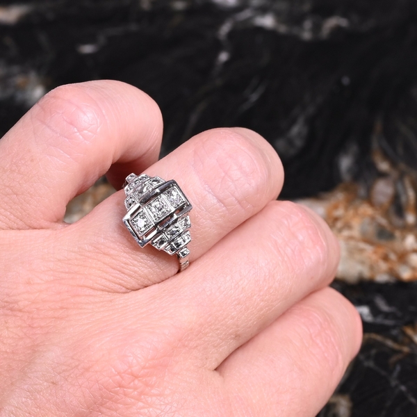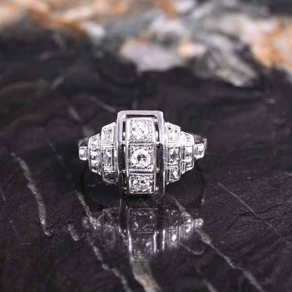 Art Deco witgouden met platina ring en diamanten - Frankrijk