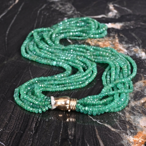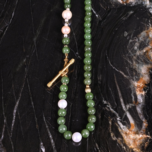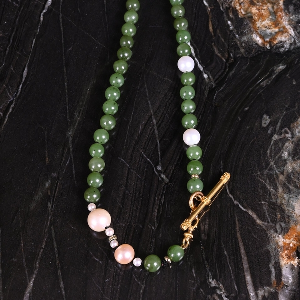 Lang jade collier met 19e eeuws geelgouden horlogesluiting met geelgouden staf