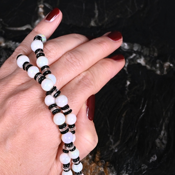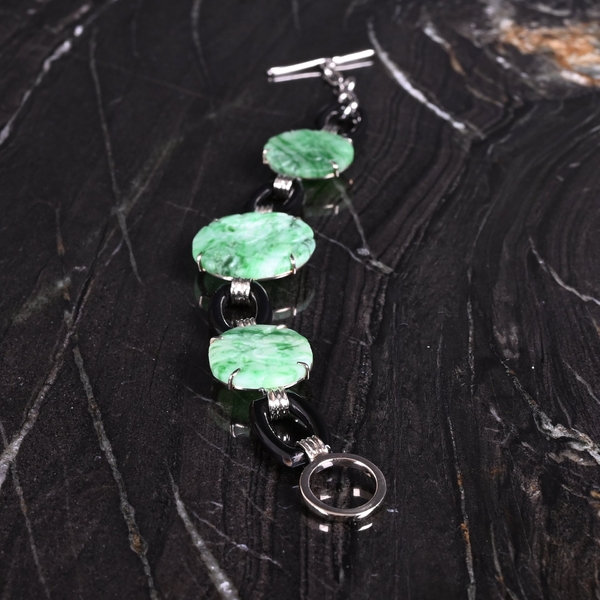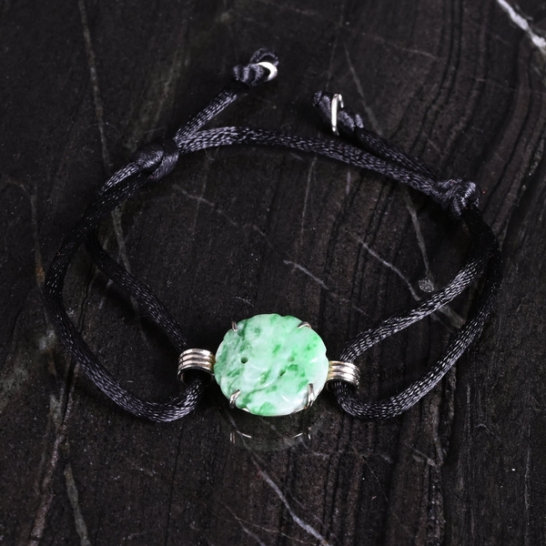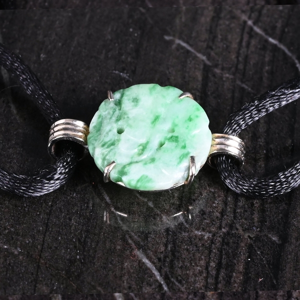 Art Deco ronde gesneden jadeiet schijf in witgouden zetting aan zwart koord als armband