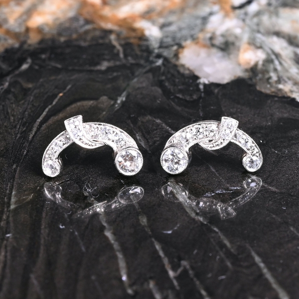 Paar geelgouden oorclips met getordeerde draad en diamanten