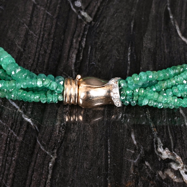 Geelgouden entouragering met smaragd en diamanten in witgouden zetting